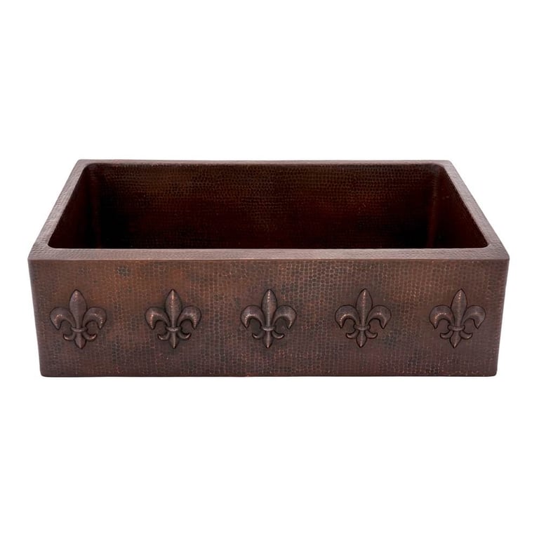 Hammered Copper Kitchen Apron Single Basin Sink w/ Fleur De Lis